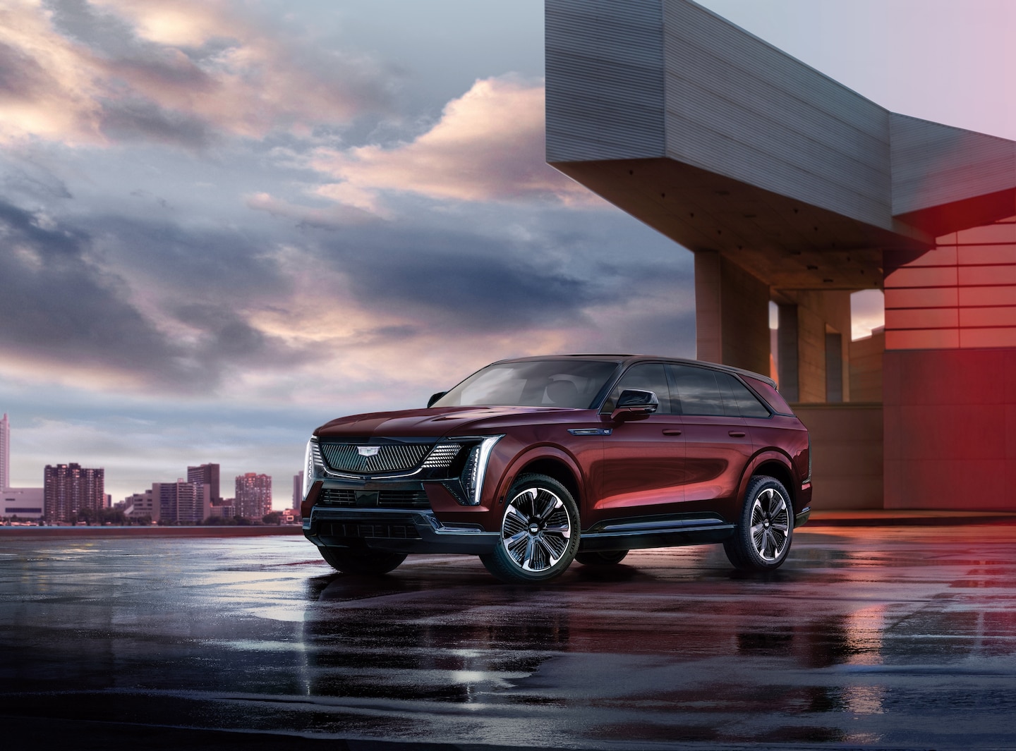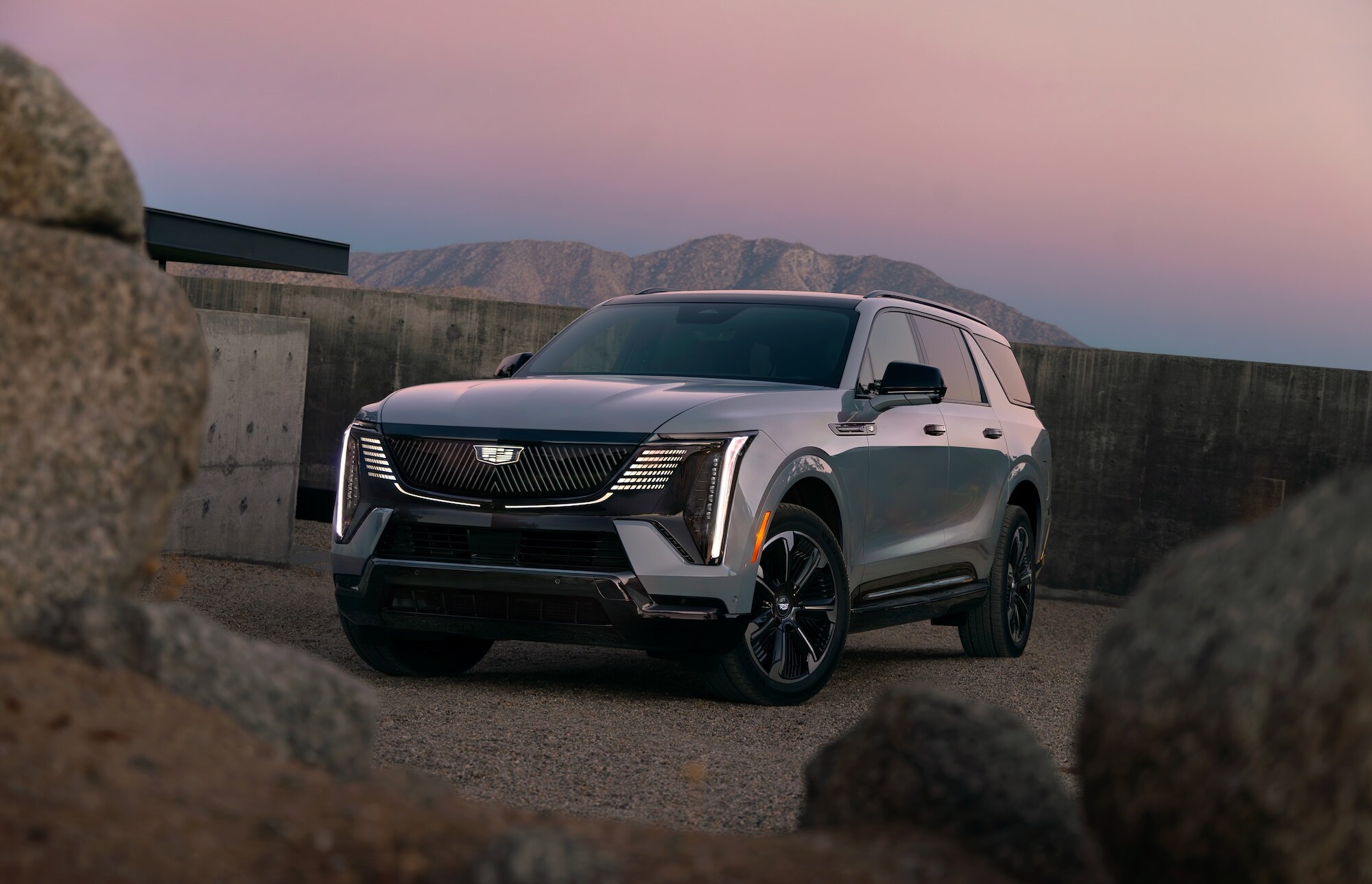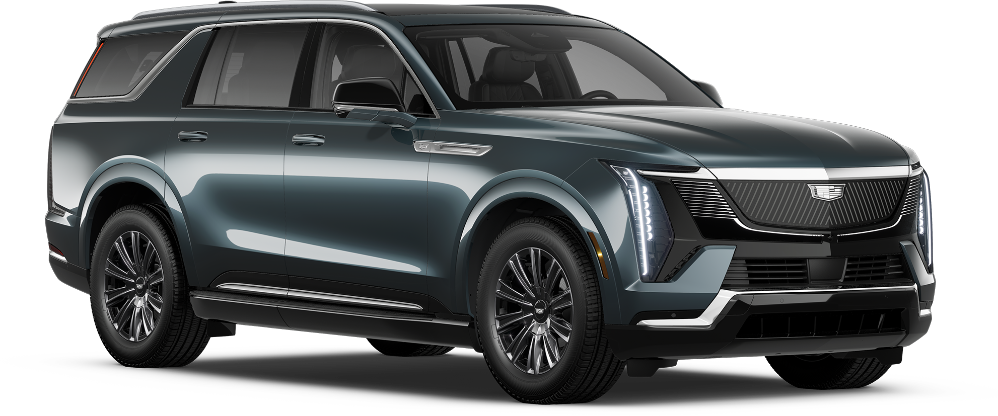 The Escalade IQ makes a bold statement with its aerodynamic profile and commanding presence. Available 24-inch wheels provide the largest wheel option ever offered on an Escalade, while the panoramic fixed glass roof floods the cabin with natural light.